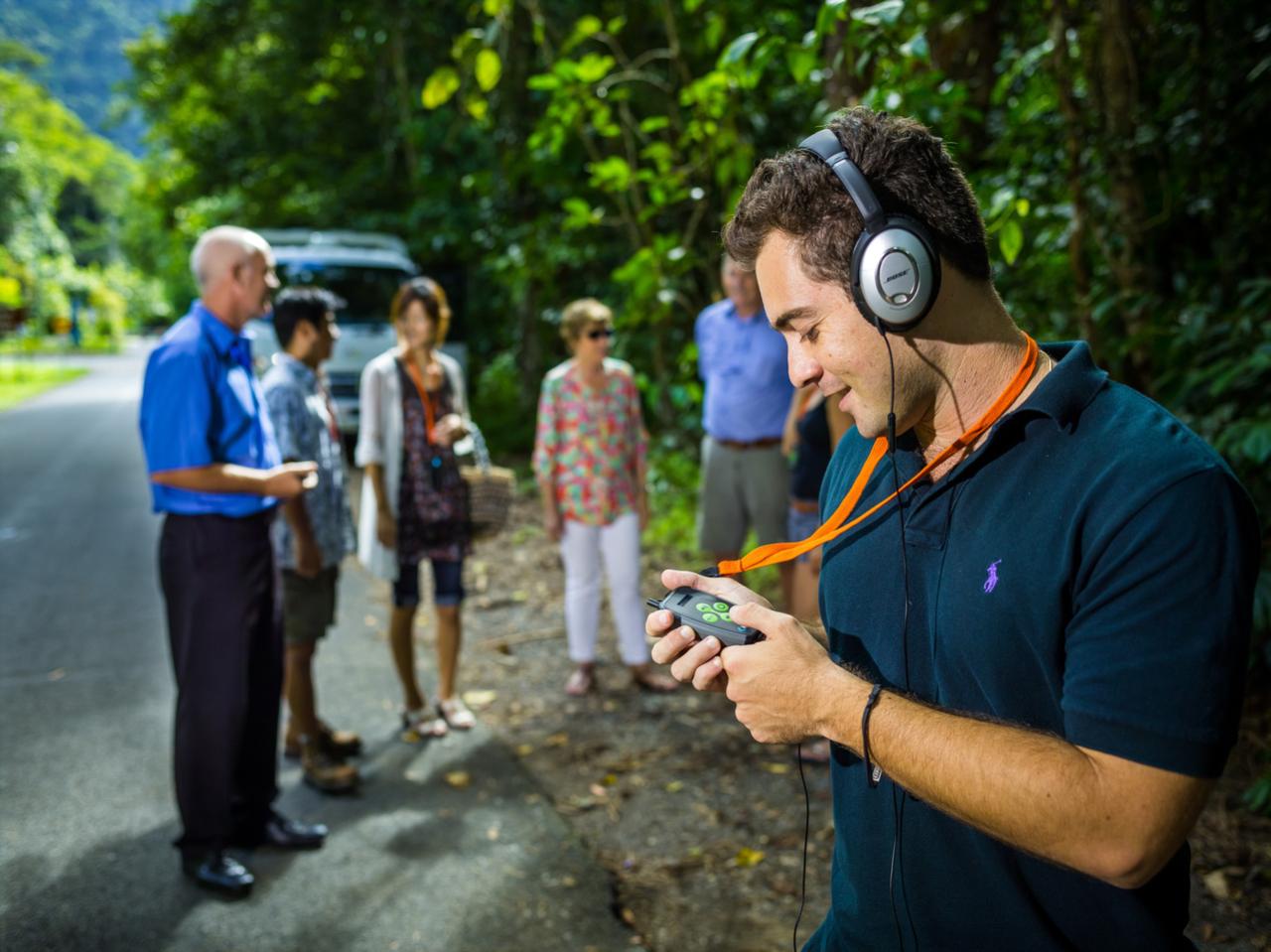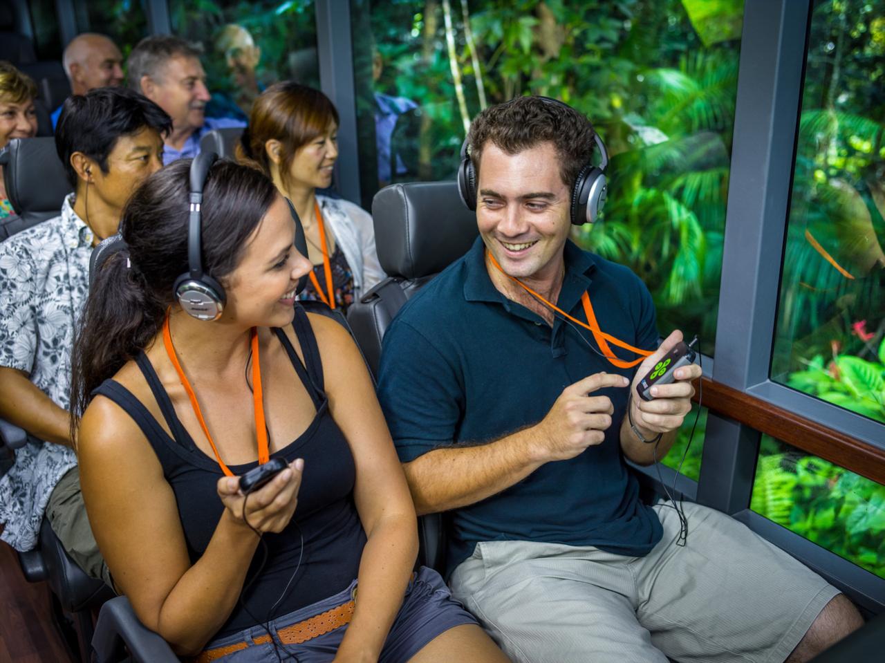 Join us on our purpose built vehicle, exploring the ancient lowland rainforests of the World Heritage listed Cape Tribulation and Daintree National Parks. This eco-accredited tour is led by experienced guides who have been selected based on their local knowledge and tour guiding experience, ensuring you a most memorable day. This morning, our driver/guide will collect you and start your journey north along the scenic coastal driver of the Captain Cook Highway. Our first stop this morning is Mossman Gorge Centre, where you will enjoy a morning tea before boarding the shuttle bus into Mossman Gorge itself. Discover pristine waters and ancient rainforest on a driver guided walk through Mossman Gorge. Next stop is the Daintree River Cruise Centre- keep an eye out for the predatory Saltwater Crocodile and other abundant wildlife on a 1 hour river cruise. Enjoy lunch in a beautiful rainforest setting. After lunch, we will visit Cape Tribulation beach; named by Captain James Cook on his voyage of discovery in 1770. It’s then time to turn south and travel back for a stop at the Daintree Ice Cream Company. An refreshing fruit ice cream is included here; made from exotic fruits grown on their on-site fruit orchard. Gluten and dairy free options are available. Last stop today is the Alexandra Lookout – a great photo opportunity with views across the rainforest canopy out to the Daintree River mouth and Coral Sea. Sit back and enjoy the journey back after a wonderful day. GPS activated commentary is available in 6 languages on this tour.