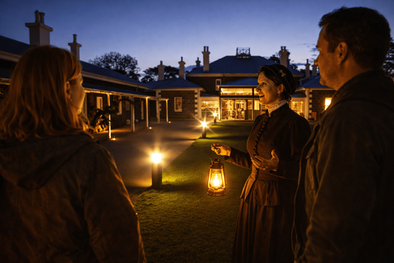 As darkness falls, embark on an award-winning ghost tour through the inky blackness of this sprawling 20,000-acre heritage property, just 40 minutes from Melbourne. Explore the haunted lake’s misty banks, the eerie stables where ghostly hooves echo, and the abandoned meat room thick with unsettling silence. Wander through the servants’ quarters, and dare to uncover the dark secrets lurking beneath the old bluestone men’s quarters.