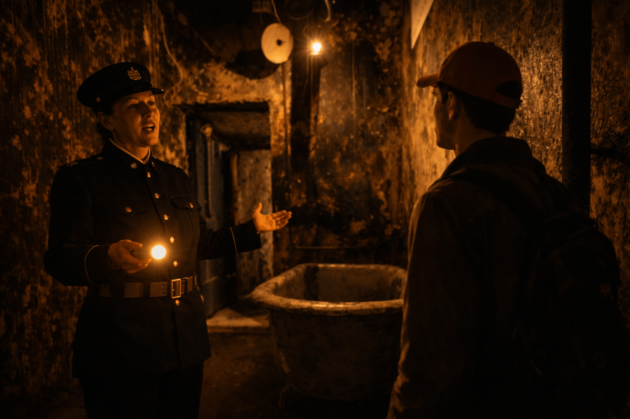 Begin your night with a chilling exploration of the museum, before plunging into a ghost tour like no other. Creep through the governor’s private bathroom, stand beneath the hangman’s gallows, and feel the chill of the original kitchen and shower block where whispers of the past still echo.
