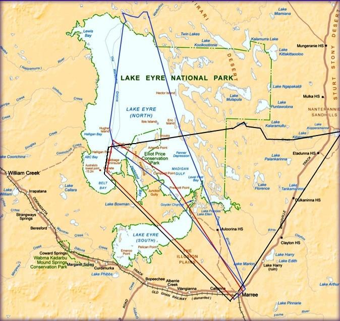 Our Lake Eyre Tours and Flights include a spectacular flight over Lake Eyre viewing the Warburton Groove (major inflow) and Tirari Desert and depart from William Creek. This flight views also Elliot Price Conservation Park, (Donald) Campbell Point, Jackboot, Halligan & Belt Bays, Lake Eyre South, major islands & landmarks. Longer flights extension options available – please ask ) to the northern extreme of the lake and the Warburton & Macumba Rivers and southern Simpson Desert region of Lake Eyre North. The extended flight will fly over view the Warburton River inlet. Learn of the Marree Man giant sculpture.