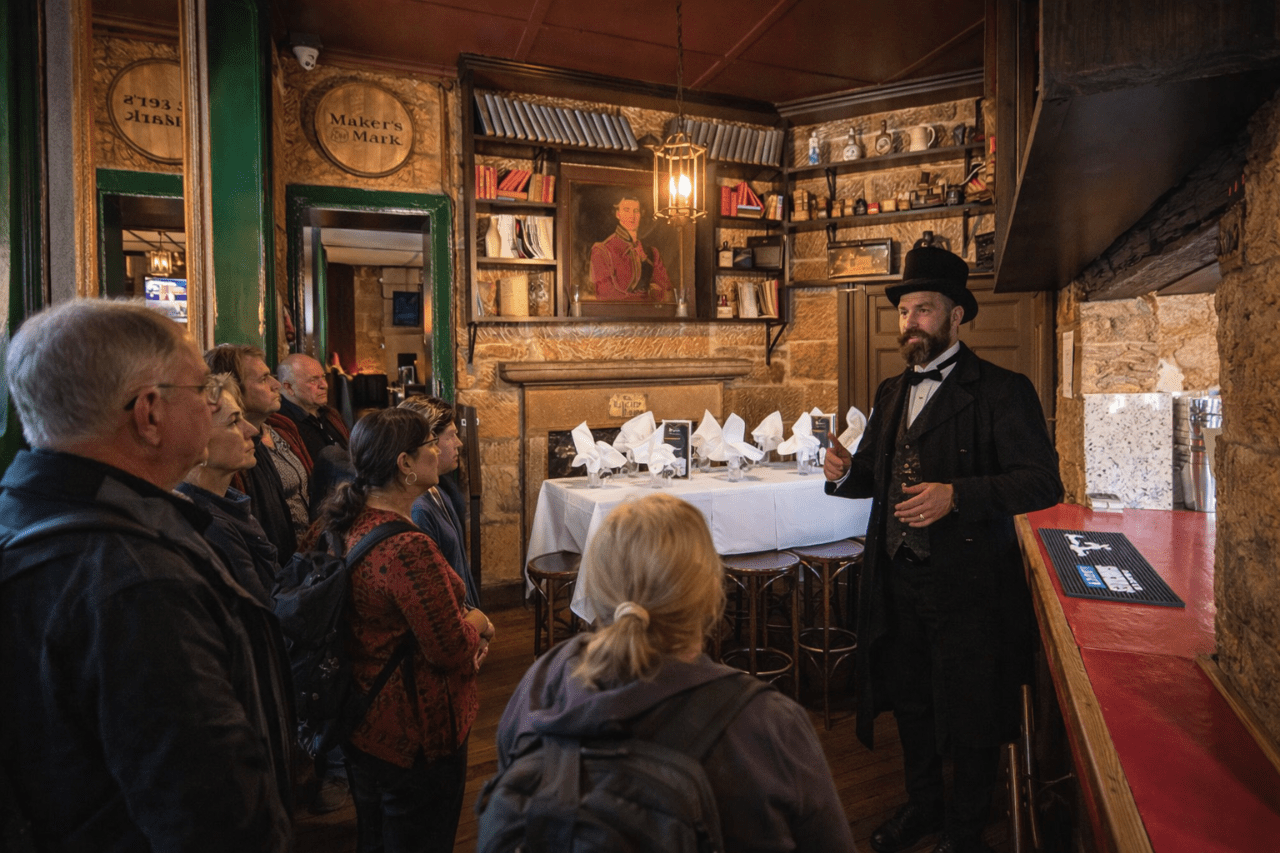 seaport, with stops at a pub haunted by a ghostly pianist, a notorious drinking